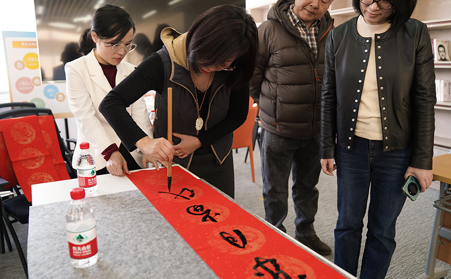 活動現場一片歡樂祥和的節日氛圍,前來領取春聯及福字的員工絡繹不絕,大家手捧著新鮮出爐的春聯,臉上洋溢著幸福的笑容,對書法家們的精湛技藝贊不絕口。一位在國際大廈工作的員工表示:“在超市選購春聯雖然方便,但現場手寫的春聯更有溫度、更有年味。我拿到了一副很合我心意的手寫春聯,一定要把這份福氣帶回家。”短短兩個小時內,現場就送出了約500副春聯和500個福字,將滿滿的福氣傳遞到每個人手中。