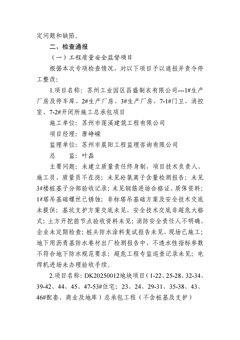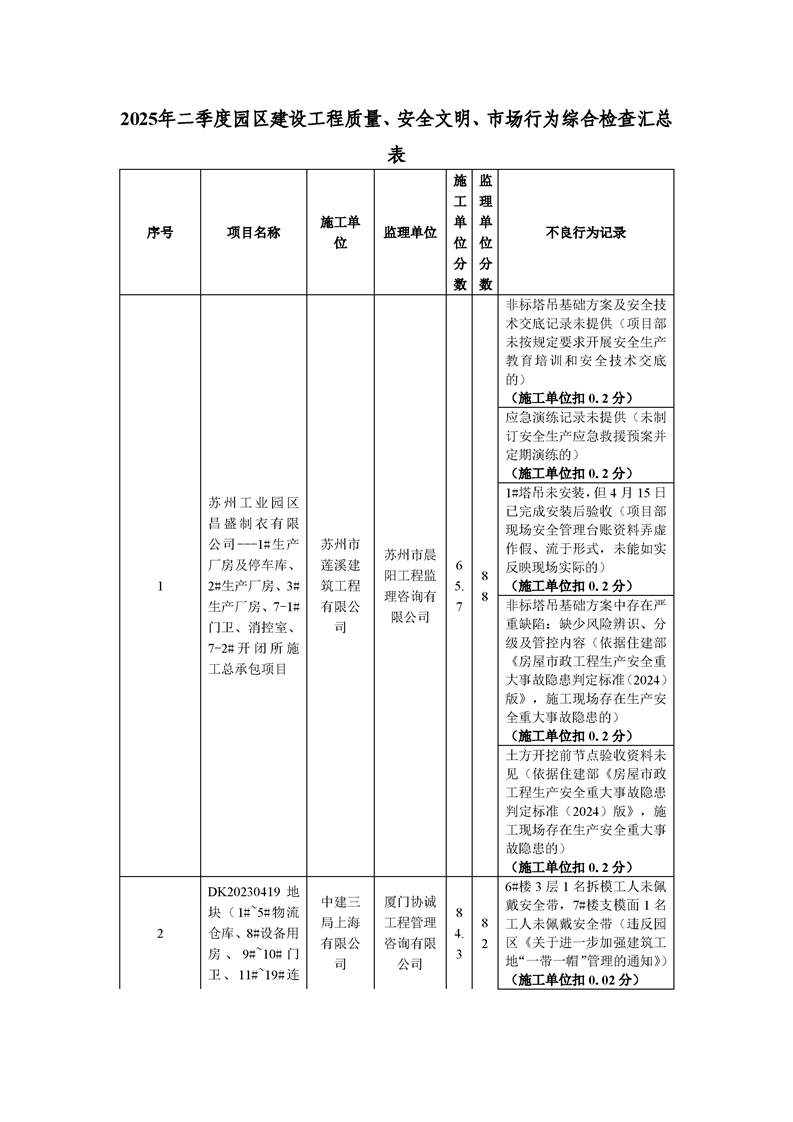 園區規劃建設委員會關于2025年二季度園區建設工程質量、安全文明、市場行為綜合檢查通報