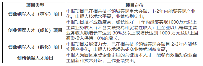 (一)創業領軍人才(領軍、成長、孵化)申報項目需滿足: