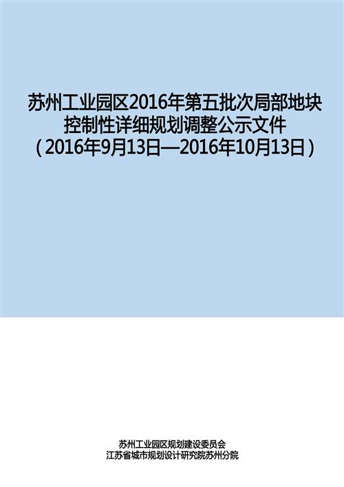蘇州工業(yè)園區(qū)2016年第五批次局部地塊控制性詳細規(guī)劃調整公示