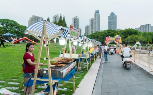 星光、草地、音樂(lè)、夜市一鍵開(kāi)啟“夜嗨”模式“班味”消散,“松弛感”拉滿(mǎn)探尋市井里的“煙火味道”舞臺(tái)下是“幸福夜市”,政策宣傳、非遺漆扇體驗(yàn)、DIY串珠手鏈、童年回憶雜貨鋪等20多個(gè)特色攤位聚集于此,打造“別YOUNG”的“歡慶之夜”,吸引廣大轄區(qū)青年前來(lái)“趕集”打卡,煥新勝浦夜經(jīng)濟(jì)新活力。在享受音樂(lè)的同時(shí),現(xiàn)烤魷魚(yú)、鐵板豆腐、燒烤大肉串、長(zhǎng)沙臭豆腐、非遺糖畫(huà)、鮮榨果汁、手磨咖啡等各種美食也在一次又一次沖擊著大家的味蕾,現(xiàn)場(chǎng)一根根“烤串兒”、一聲聲“干杯”此起彼伏,這場(chǎng)盛宴讓每個(gè)人都感受到“煙火人間”。