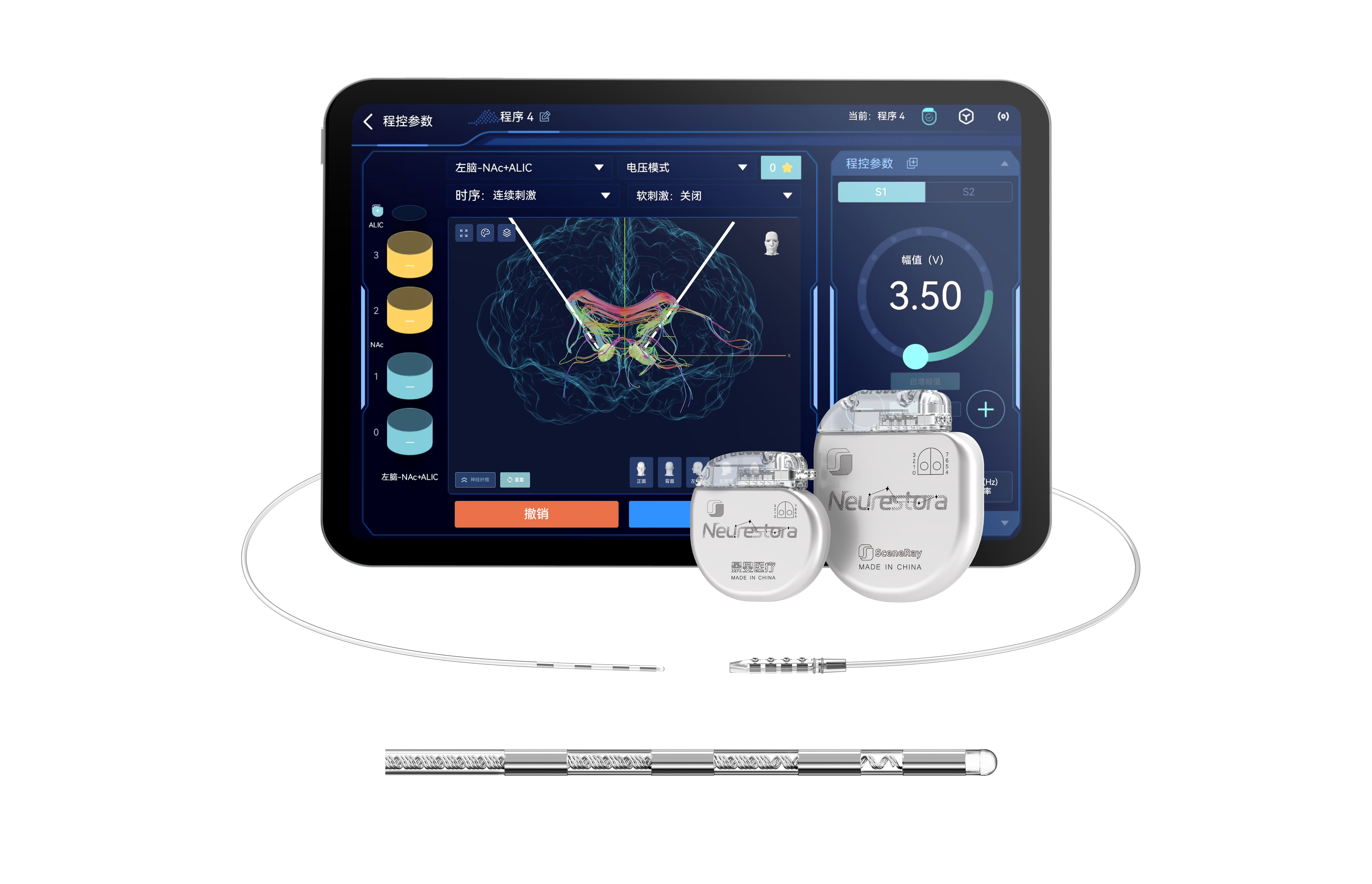 在此背景下,景昱醫(yī)療研發(fā)的植入式腦深部神經(jīng)刺激系統(tǒng)應(yīng)運而生。腦機接口DBS技術(shù),是通過植入電極對腦內(nèi)特定區(qū)域施加電刺激,調(diào)控腦內(nèi)神經(jīng)環(huán)路功能的成熟安全技術(shù),已在臨床應(yīng)用近30年,廣泛用于治療難治性運動障礙、難治性精神障礙等疾病,可通過調(diào)節(jié)異常神經(jīng)活動,重塑大腦功能,幫助患者回歸正常生活。而景昱醫(yī)療的植入式腦深部神經(jīng)刺激系統(tǒng),由植入式腦深部神經(jīng)刺激器、電極導(dǎo)線與延伸導(dǎo)線聯(lián)合使用,創(chuàng)新采用雙靶點刺激技術(shù),對伏隔核和內(nèi)囊前肢進(jìn)行刺激,專門用于難治性中重度阿片類藥物成癮患者的防復(fù)發(fā)輔助治療,成功填補了物理性干預(yù)阿片類藥物成癮治療的技術(shù)空白。