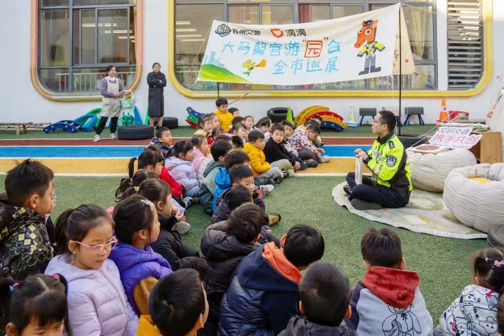 第十四個“全國交通安全日”到來之際,蘇州工業園區翡翠幼兒園里,一場別開生面的戶外教學活動正在暖陽下、歡聲笑語中展開。孩子們圍坐在“大馬警官”身邊,聽他用溫和的聲音講述“生肖小鎮”里的交通安全故事。這一幕,不僅是2025年度“大馬警官游‘園’會”主題系列活動的一幀畫面,更是近年來蘇州交警在低齡幼兒交通安全教育領域持續探索、系統推進的生動縮影。從2023年公安部道路交通安全研究中心在蘇州工業園區啟動“低齡幼兒交通安全繪本教育”試點,到如今“大馬警官”形象深入童心、走入家庭、影響社會,這一路走來,不僅是一場交通安全教育方式的創新實踐,更是一次“校家警社”協同育人的深刻變革。