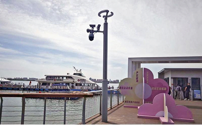 “The intelligent pole integrates the functions of illumination, information release, video surveillance, monitoring for preventing drowning, and 5G base stations,” said an executive from the company.