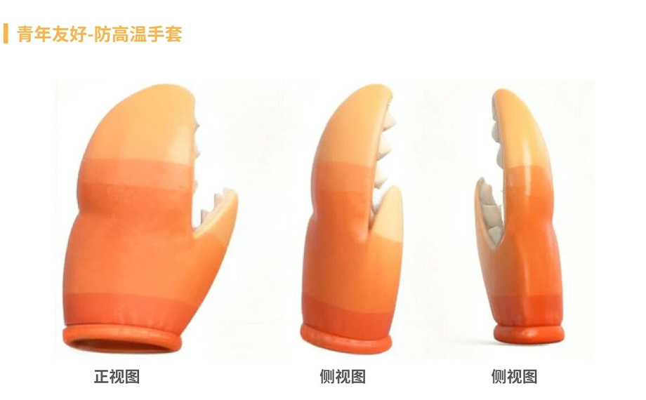 作品緊扣“實用主義”,深刻理解年輕人對“顏值與實力并存”的追求。防高溫手套內部采用高效隔熱材料,外部防滑耐磨;止汗帶主體使用高彈、吸汗快干面料,確保功能性與舒適度。螃蟹背包造型萌趣,構成了一個積極快樂的卡通形象,讓孩子能夠在出行中編織自己與“蟹寶”的故事。
